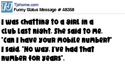 X I was chatting to a girl in a club last night. She said to me, "Can I have your mobile number?" I said, "No way, I've had that number for years".