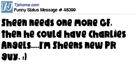 X Sheen needs one more GF, then he could have Charlies Angels....I'm Sheens new PR guy. ;)