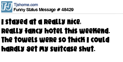- # 209802 The towels were so thick at the hotel, I could barely shut my suitcase.