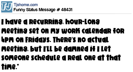 X is I have a recurring, hour-long meeting set on my work calendar for 4pm on Fridays. There's no actual meeting, but I'll be damned if I let someone schedule a real one at that time."