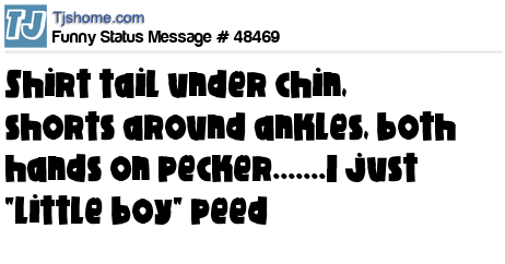 X says Shirt tail under chin, shorts around ankles, both hands on pecker.......I just "little boy" peed