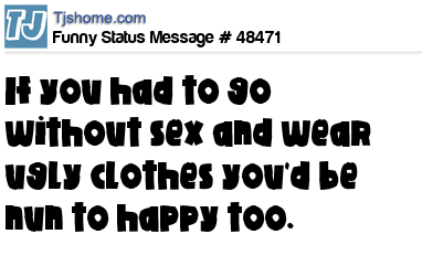 X says If you had to go without sex and wear ugly clothes you'd be nun to happy too.