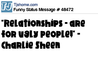X "Relationships - are for ugly people!" - Charlie Sheen
