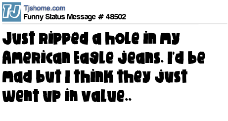 X just ripped a hole in my American Eagle jeans. I'd be mad but I think they just went up in value..