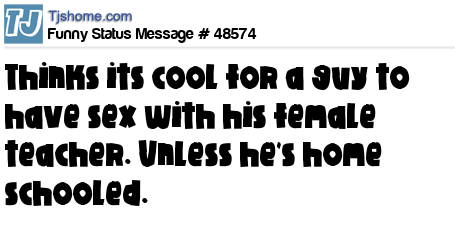 X thinks its cool for a guy to have sex with his female teacher. Unless he's home schooled.