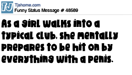 X is As a girl walks into a typical club, she mentally prepares to be hit on by everything with a penis.
