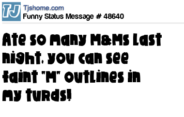 X ate so many M&Ms last night, you can see faint "M" outlines in my turds!