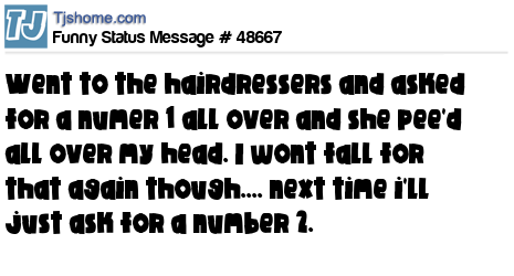 X  went to the hairdressers and asked for a numer 1 all over and she pee'd all over my head. I wont fall for that again though.... next time i'll just ask for a number 2.