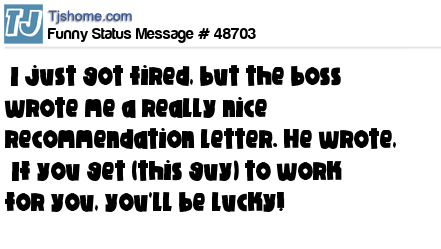 X I just got fired, but the boss wrote me a really nice recommendation letter. He wrote, “If you get (this guy) to work for you, you'll be lucky!”