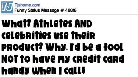 X What? Athletes AND celebrities use their product? Why, I'd be a fool NOT to have my credit card handy when I call!