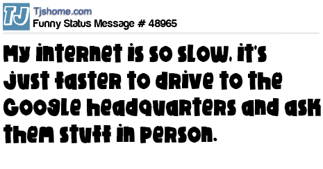 - # 32667 My internet is so slow, it would be faster to just drive to Google's headquarters and ask them this sh!t in person.