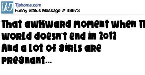 X is That awkward moment when The world doesn't end in 2012 And a lot of girls are pregnant...