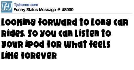X is Looking forward to long car rides, So you can listen to your ipod for what feels like forever
