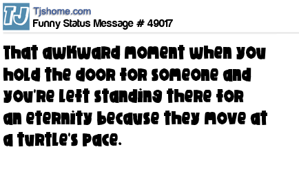 X that awkward moment when you hold the door for someone and you're left standing there for an eternity because they move at a turtle's pace.