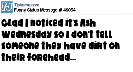- # 49065 Awkward....That moment when you think you are being helpful by telling someone they "got a lil dirt on their forehead" and they tell you it's Ash Wednesday.