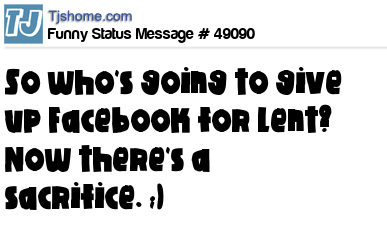 X is So who's going to give up Facebook for Lent? Now there's a sacrifice. ;)
