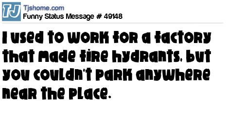 X I used to work for a factory that made fire hydrants, but you couldn't park anywhere near the place.