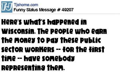 X Here's what's happened in Wisconsin. The people who earn the money to pay these public sector workers -- for the first time -- have somebody representing them.