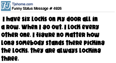 X says I have six locks on my door all in a row. When I go out, I lock every other one. I figure no matter how long somebody stands there picking the locks, they are always locking three.