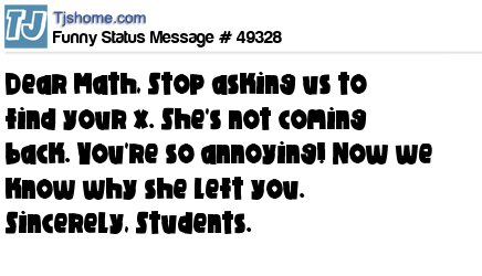 - # 129901 Dear Algebra, Please stop asking us to find your X She's never coming back and don't ask Y