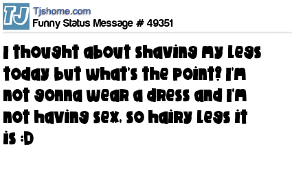 X I thought about shaving my legs today but what's the point? I'm not gonna wear a dress and I'm not having sex, so hairy legs it is :D
