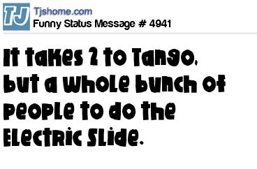 X  It takes 2 to Tango, but a whole bunch of people to do the Electric Slide.