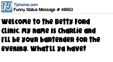 X Welcome to the Betty Ford Clinic, my name is Charlie and I'll be your bartender for the evening. What'll ya have?