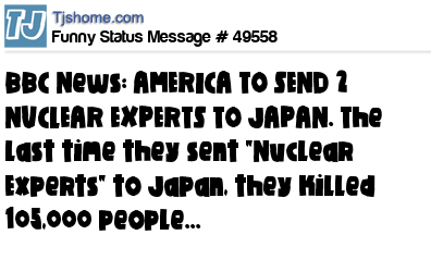 X BBC News: AMERICA TO SEND 2 NUCLEAR EXPERTS TO JAPAN. The last time they sent "Nuclear Experts" to Japan, they killed 105,000 people...