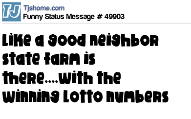 X says like a good neighbor state farm is there....with the winning lotto numbers