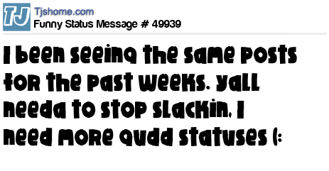 X I been seeinq the same posts for the past weeks. yall needa to stop slackin, I need more qudd statuses (: