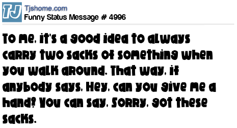 X says to me, it's a good idea to always carry two sacks of something when you walk around. That way, if anybody says, Hey, can you give me a hand? You can say, Sorry, got these sacks.