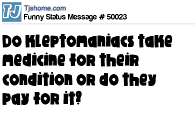 - # 43408 Do kleptomaniacs take medicine or do they pay for it?
