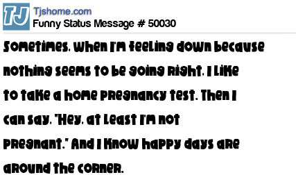 - # 127468 Sometimes, when I'm feeling down because nothing seems to be going right, I like to take a home pregnancy test. Then I can say, "Hey, at least I'm not pregnant." And I know happy days are around the corner. --daniel tosh
