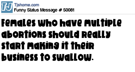 X is Females who have multiple abortions should really start making it their business to swallow.