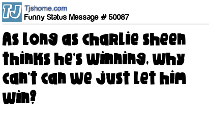 X is as long as charlie sheen thinks he's winning, why can't can we just let him win?