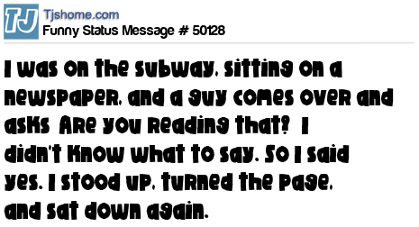 - # 66460 I was on the subway, sitting on a newspaper, and a guy comes over and asks "Are you reading that?" I didn't know what to say. So I said yes. I stood up, turned the page, and sat down again