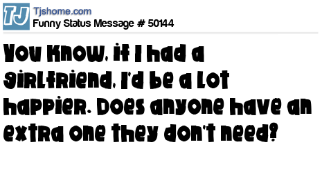 X You know, if I had a girlfriend, I'd be a lot happier. Does anyone have an extra one they don't need?