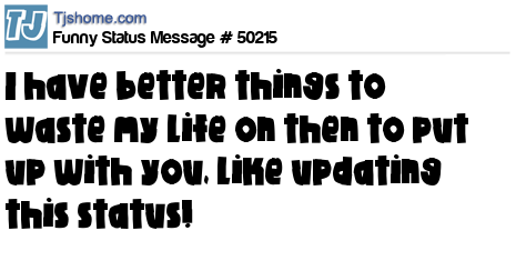 X I have better things to waste my life on then to put up with you, like updating this status!