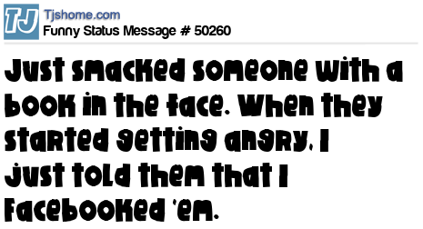 X is just smacked someone with a book in the face. When they started getting angry, I just told them that I Facebooked 'em.