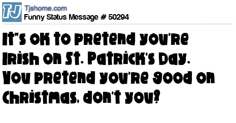 - # 126297 It's perfectly OK to pretend that you're Irish on St. Patrick's Day. You pretend you're good on Christmas, don't you?
