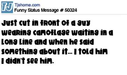 X just cut in front of a guy wearing camoflage waiting in a long line and when he said something about it... I told him I didn't see him.