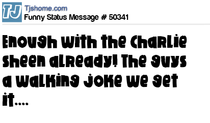 X is Enough with the Charlie sheen already! The guys a walking joke we get it....