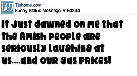 X it just dawned on me that the Amish people are seriously laughing at us....and our gas prices!