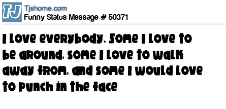 - # 73673 I love everybody. Some I love to be around. Some I love to avoid. And some I'd love to punch in the face.