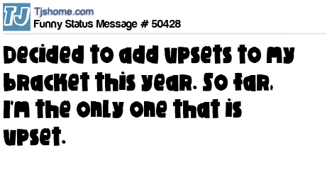 - # 93987 After all the upsets today. Cathy from the mailroom is gonna win a $hitload of money off her "Bracket thingy" this year..