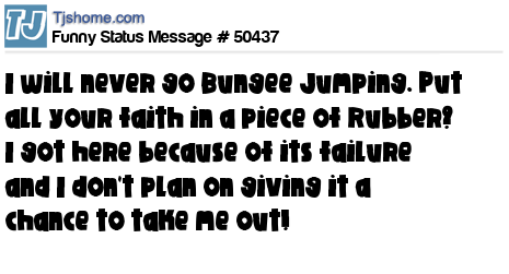 - # 67089 I refuse to go bungee jumping...I came into this world because of a broken rubber, I'm not leaving because of one.