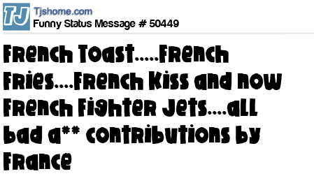 X is French Toast.....French Fries....French Kiss and now French Fighter Jets....all bad a** contributions by France
