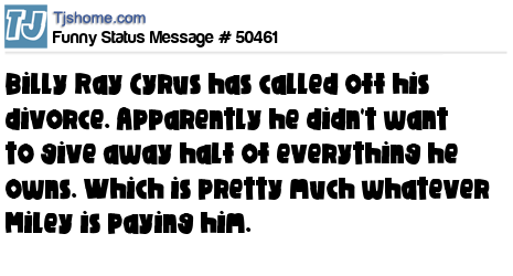 X says Billy Ray Cyrus has called off his divorce. Apparently he didn't want to give away half of everything he owns. Which is pretty much whatever Miley is paying him.