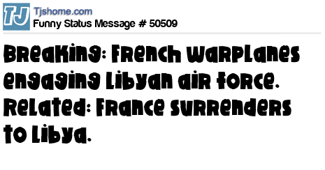 X Breaking: French warplanes engaging Libyan air force. Related: France surrenders to Libya.