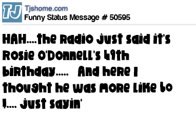 X is HAH....the radio just said it's Rosie O'Donnell's 49th birthday..... And here I thought he was more like 60 !.... just sayin'
